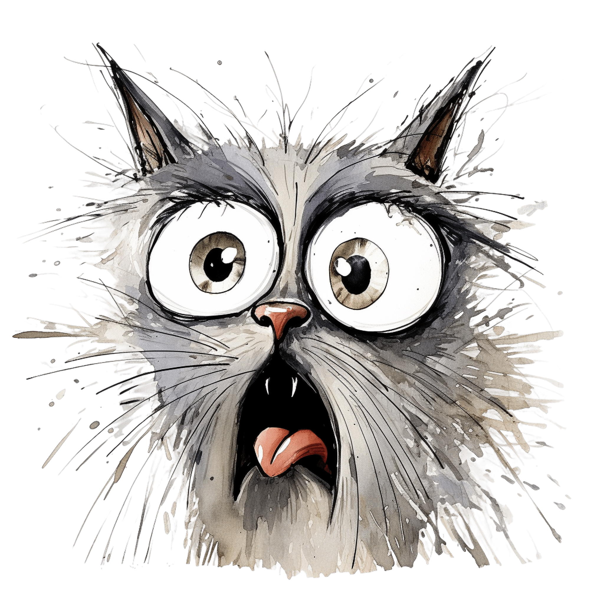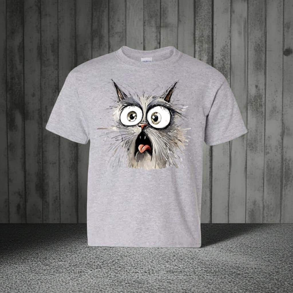 🎨 Design: Screaming cat with wide green eyes, fur puffed up, and a funny scared expression.