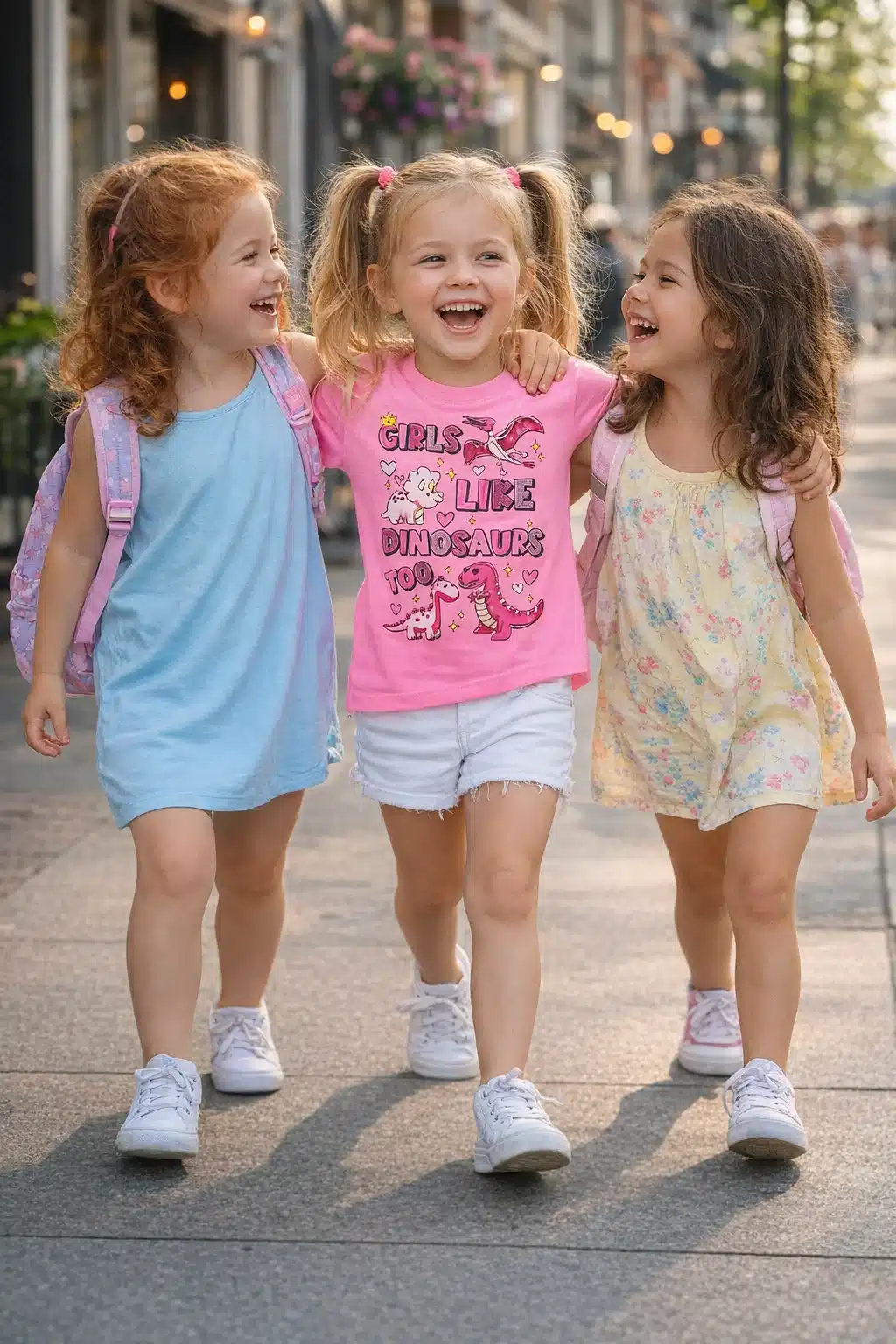 Girls Like Dinosaurs Too T-Shirt Age 5-6 and 7-8.